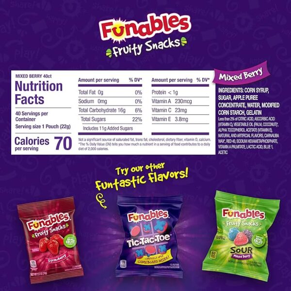 & Free Shipping- Mixed Berry Bliss: Funables Fruity Snacks offer a delightful assortment of mixed berry flavors, creating a harmonious blend of sweet and tangy notes.